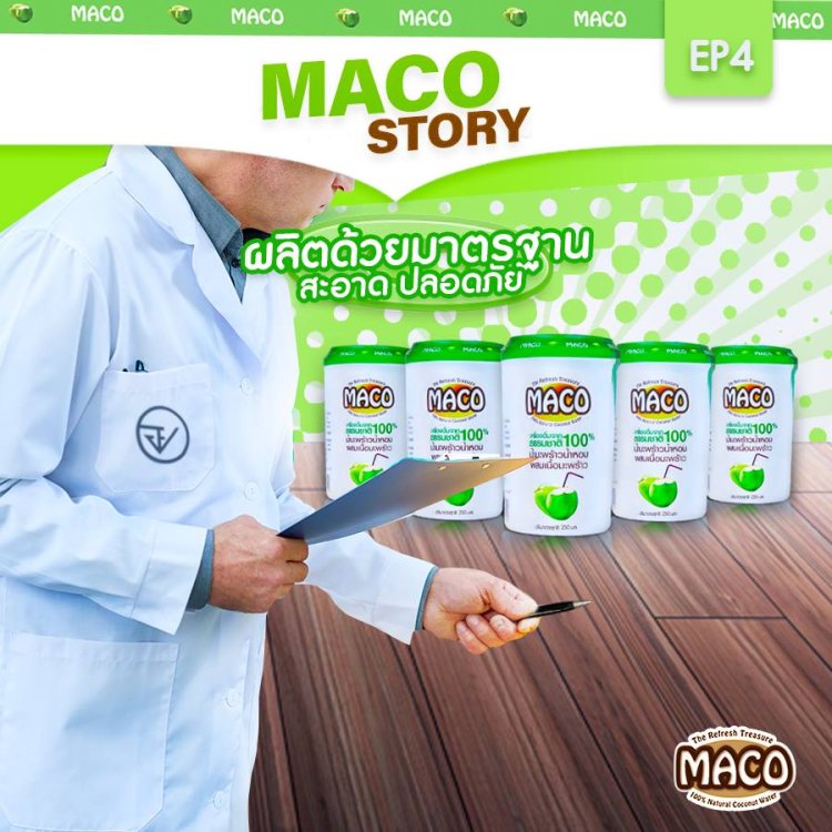 จากนั้นจะทำการตรวจสอบมะพร้าวอีกรอบ เพื่อนำไปทำขั้นตอนฆ่าเชื้อด้วยการผ่านกระบวนการพาสเจอไรซ์ แล้วเปลี่ยนเป็นมะพร้าวมาโค่ น้ำมะพร้าวน้ำหอมที่รสชาติดีที่สุดในโลก